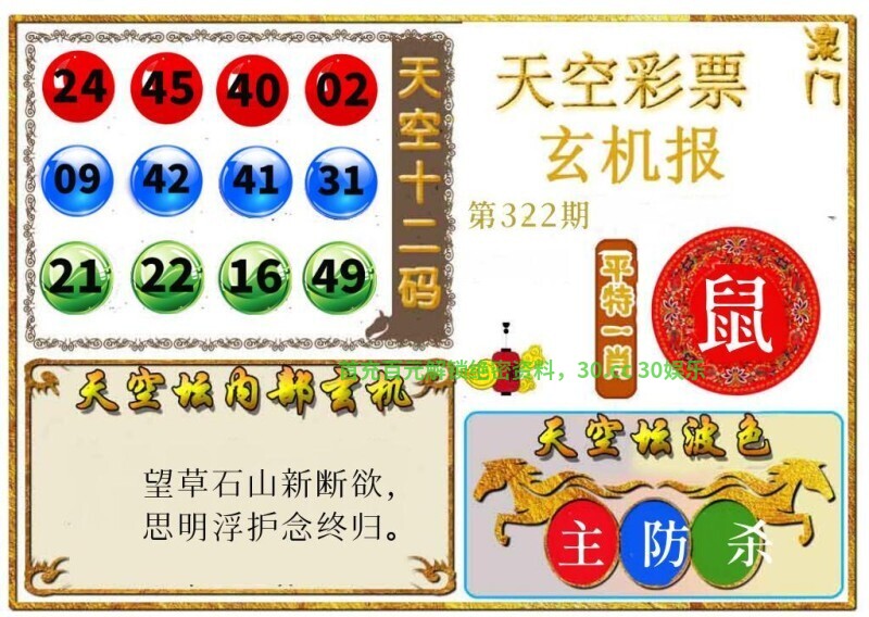 | 322期:绝杀三肖【狗虎鸡】开:羊47准 |